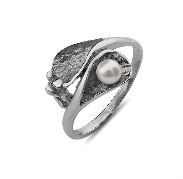 Denne ring er udformet som en smuk lilje der snor sig om fingeren. I midten af blomsterhovedet er isat en hvid kulturperle.